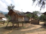 We stopped late morning at a village. The village was larger than the first with around 400 people living there. There was a school and many industrious ways to make a living. The women and small children sold silk and cotton hand woven scarves and sold them to tourists. The men worked in the rice fields in the wet season and collected mushrooms from the forest in the dry season to dry and sell. It was not something we felt overly comfortable doing – seeing other people live and almost seeing them as an attraction – but it was interesting.
