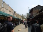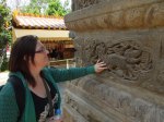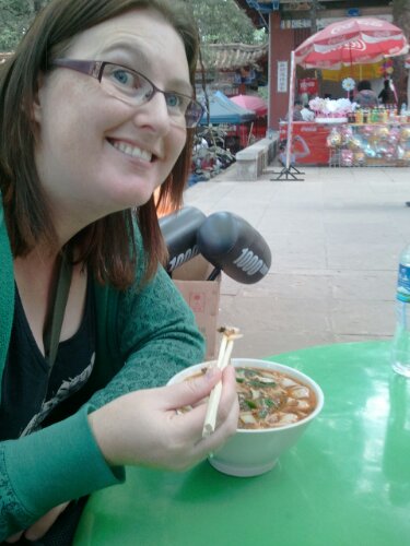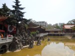 The next day we went to the golden park temple, a 1 hour bus ride away. It is essentially a temple complex with temples, gardens and a bell tower situation on a mountain. We had gotten over our templed-out phase and just as well. The place was beautiful and the style of temple being completely different to SE Asian style and very similar to the Korean style, of which we know well. The gardens, with their small stone bridges, stone statues, small wiry trees and miniature temples were a sight to behold, while the bell tower offered views over the bustling metropolis below. It’s becoming quite apparent how big China really is! After wading through a chorus of “hellos” from a visiting kindergarten group, we had lunch at the complex: a rather average bowl of flat noodles that seemed to have more oil than broth.