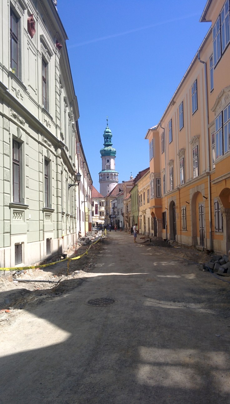 Our second full day we decided to have a day trip to Sopron a town about an hour west of Gyor. Sopron has in the past been part of Austria so has a very different feel. We arrived mid morning after enjoying a bag free train journey and strolled towards the old town about 5 minutes from the train station. The old town is small with many beautiful buildings, unfortunately for us there was a lot of roadworks and building renovation happening and many of the beautiful buildings had diggers and trucks outside. Not ideal for looking at or for photos. We found the old town beautiful and perfect for urban exploring but realistically could only spend about an hour outside before the excessive heat (40 degrees!) got to us and we needed to find air conditioning and food.