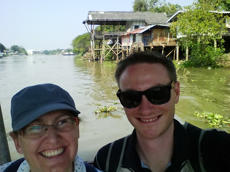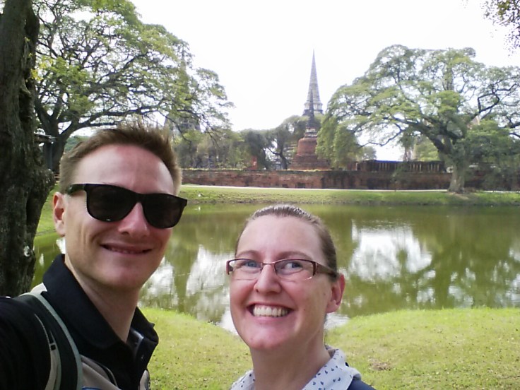 Well, the train from Bangkok station to Ayutthaya is certainly interesting! It was only 90 minutes, but it was all 3rd class. Now 3rd class is usually fine for us. More than fine in fact. But this was cramped. And by cramped, I mean that Will’s knees nearly touched the seat in front of him, and as the seats faced each other in groups of 4, it led to a pretty uncomfortable ride. But at least all of the windows were open, and at 15 Baht you really can’t complain! In fact, you can’t even buy an awful soggy service station pie back in NZ for the $0.60 that the train ticket cost.